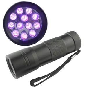 Introducing our Aluminum UV Blacklight Flashlight featuring 12 engineered enhanced LED bulbs, providing 30% more brightness than other lights at 395nm wavelength. Powered by 3 x AAA batteries (not included), this compact and powerful UV light is pocket-sized for convenience. Save time and money by easily checking the cleanliness of hotel sheets, pillows, and more. Compact at 3.7" x 1.13", it's your portable solution for various applications.