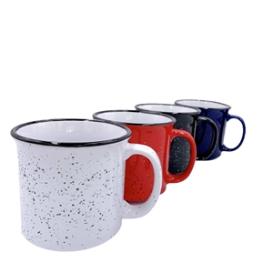 Make a statement with our 15 Oz. Camper Enamel Mug, a retro granite beauty that combines style with durability for any occasion. The speckled glaze adds a distinctive touch, and the sturdy ceramic construction ensures long-lasting use. Ideal for drinking, camping, the office, or daily life, this mug stands out with its unique design. Please note that individual craftsmanship may result in color variations in the glaze. Elevate your brand by customizing this mug with your logo.