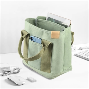 Handbag made of 16 oz canvas. Comfortable to hold and precise sewing. The base plate is removable. Multiple functional compartments inside allow you to organize the contents of the bag more neatly. Can be used as lunch bag, shopping bag, women's handbag, etc. You can put down your mobile phone, umbrella, charger, wallet, etc., books, water cup, etc. Hand out these products for branding at your next trade show and see what an impact it makes! Detailed price inquiries are welcome, spot sales.