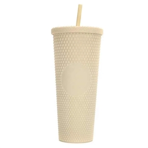 Elevate your beverage experience with our studded tumbler, crafted from food-grade vinyl acrylic-unbreakable, durable, and BPA-free. Each tumbler includes reusable, eco-friendly straws, and the buckle-designed lid prevents straw loss. With a 24oz capacity, it fits most car cupholders, while the double walls insulate cold beverages. Sturdy and rust-resistant, our tumblers feature thick acrylic walls and vacuum-sealed insulation. Perfect for custom projects or branding with your logo, these BPA-free, non-toxic tumblers add a touch of style to any event.