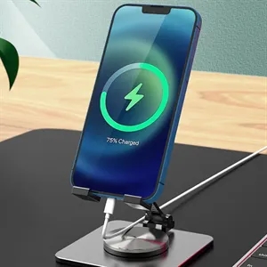The phone stand provides 360 degree rotation, you can adjust the angle to find the perfect viewing angle.