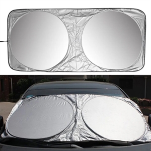 This durable sun blocker screen protector for cars effectively shields against UV rays, preventing damage to the dashboard, seats, and plastic parts. Sized at 59.05"L x 27.55"W, it's ideal for small cars with windshields not exceeding 59 x 26 inches (150*65cm). The sunshade is easy to set up without suction cups; simply place it on the front glass and lower the sun visor. Its lightweight design allows for quick folding and storage in the sleek pouch provided, making it convenient and portable, and it can be kept in your vehicle's door pockets.