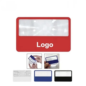 Credit card-sized magnifier,featuring a clear lens with colored borders and 3x magnification, it's ideal for reading menus and directions. Easily customizable with your logo, perfect for promotional giveaways. Fits comfortably in wallets. Size: 3 1/2" L x 2 1/4" W.