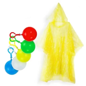 Be prepared for unexpected weather with our emergency disposable raincoat. Lightweight and durable, it's conveniently packed in a twist-open portable plastic ball with a clip-on keychain for easy travel. Stay dry and comfortable in the rain with this waterproof essential.