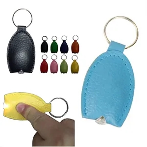 This custom keychain flashlight is made with faux PU leather and provides a push-button LED light attached with a split key ring for carry. Button cell batteries are inserted and power up the flashlight in a variety of colors for you to choose from. Customize with an imprint of your company name or logo before your next promotional event for great brand exposure for your business. 2.5" L x 1.5" W