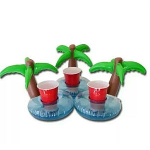 Introducing our Floating Drink Holder -- the perfect companion for enjoying a refreshing beverage in the pool, ocean, or beach. This inflatable PVC ring is easy to inflate and conveniently stores flat when not in use. Designed with a classic innertube style, it accommodates traditional solo party cups and similar-sized drink containers. Choose from festive designs like doughnuts or palm trees, and a variety of colors. Customize it with your school, sports team, organizational, or company logo. With many styles available, contact us soon for more details. For quantities exceeding 5000 pieces, take advantage of cost-effective sea shipping. Make a splash with this fun and practical accessory!