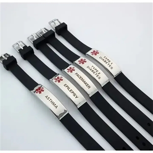 This medical alert ID bracelet combines high-quality stainless steel with silicone, featuring a hypoallergenic composition and a flexible buckle for comfort. It's essential for individuals with medical conditions like diabetes, epilepsy, allergies, heart disease, and more. At 8" in length, it's sized for adults, with laser-engraved details that are easy to read and permanent. This bracelet can be crucial in emergencies, informing first responders of your health needs. Dimensions are 8.5" L x 3.9" W x 1.18" H.