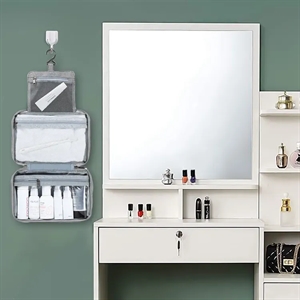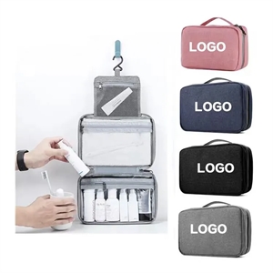 Organize on the go with our travel organizer bag, featuring three compartments: a ventilated pocket for breathability, a mesh pocket for visibility, and a clear plastic pocket for wet items. The carry handle serves as a hanging strap for easy access. Made from water-resistant polyester with sturdy stitching, it's designed to endure. Ideal for overnights, long trips, gym, or outdoor adventures. Custom logo support available.