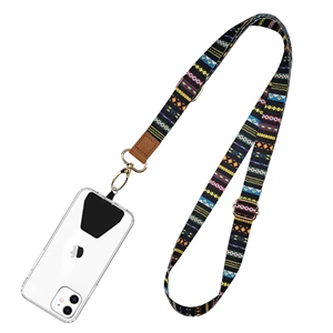 Create a customized and sturdy cable strap with the design patterns of your choice. The smooth lock and clip, made from high-quality plastic and fiber, ensure a lightweight, comfortable, and reliable experience. The cable is fashioned as a hanging neck strap with snap fasteners on each end, allowing it to secure various plug types for charging phone devices.