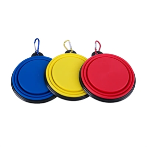 Crafted from durable TPE material, this collapsible bowl is a lightweight and portable solution. It collapses to a compact 5" disk and expands to a 2" high tapered bowl. The snap-clip attachment allows for easy fastening to wire crates and kennel doors. Perfect for hikes with your dog and ideal for use in animal shelters, dog parks, veterinary offices, or pet product retailers. The large imprint area ensures maximum brand visibility. Size: 5"x5"x2"