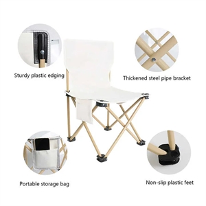 Embrace outdoor comfort with our folding camping chair. Easily set up and fold within seconds, the steel frame ensures sturdiness. The chair, complete with a carrying bag, offers convenient storage and transportation. A side pocket adds functionality for phones, snacks, and small items. Perfect for camping, fishing, and picnics, the padded backrest guarantees support. Enhance your brand with a customized logo. Enjoy the outdoors in style.