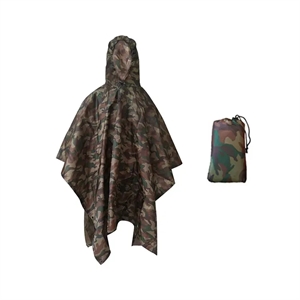Our hooded poncho serves as a raincoat, camping mat, and canopy shelter. Crafted from 210D polyester with a PU8000MM waterproof rating, it ensures dryness and comfort. Designed for ease, it features an elastic drawstring collar and sticky fastener tape sides. Its one-size-fits-most design is spacious enough to cover a backpack, and it conveniently folds into a compact storage bag for easy portability.