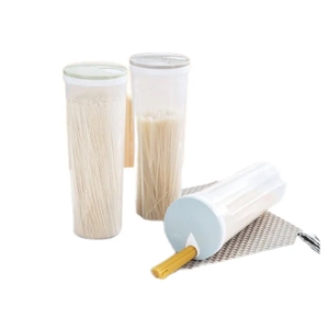 Effortlessly organize your kitchen with our BPA-free spaghetti crisper grain food storage box. Durable and shatterproof, it's perfect for noodles, cereal, rice, and more. The unique rotatable lid ensures easy access, allowing you to grab the quantity you need. Keep your food fresh and your kitchen tidy with this convenient and stylish storage solution.