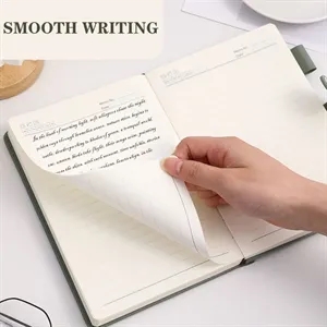 This premium A5 notebook features a durable PU leather cover with a stylish color-block design, combining aesthetics and functionality. The thick cover enhances durability and provides a comfortable grip, while the magnetic closure keeps your notes securely in place. Inside, high-quality daolin paper offers a smooth writing experience, making it perfect for jotting down notes or sketching ideas. The notebook measures 8.5 inches in length and 6.5 inches in width for the cover, with inner pages sized at 8.1 inches long and 5.5 inches wide, providing ample space for your thoughts. Ideal for business meetings, personal journaling, or creative writing.